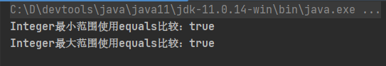 System.out.println("Integer最小范围使用equals比较:" + (a.equals(b)));