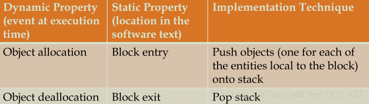 对于给定块中声明的所有实体,对象分配同时发生,从而允许为整个程序使用单个堆栈.