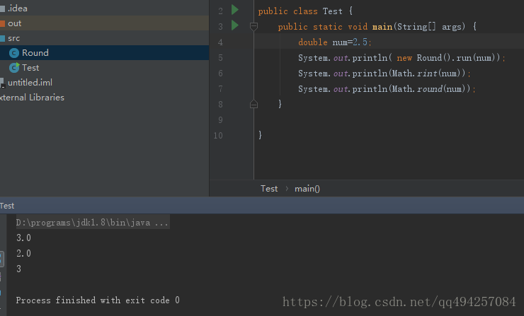 而rint(-1.5)得到的结果是-2.0,但是rint(2.5)得到的结果却是2.0,和我们预期的3.0也不一样