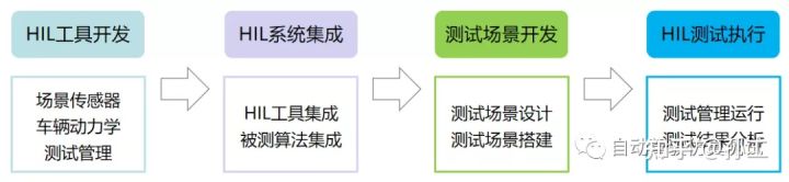说了这么多,如果要进行HIL测试该怎么做呢?可以分为HIL工具开发、HIL系统集成、测试场景开发和HIL测试执行四个步骤。
