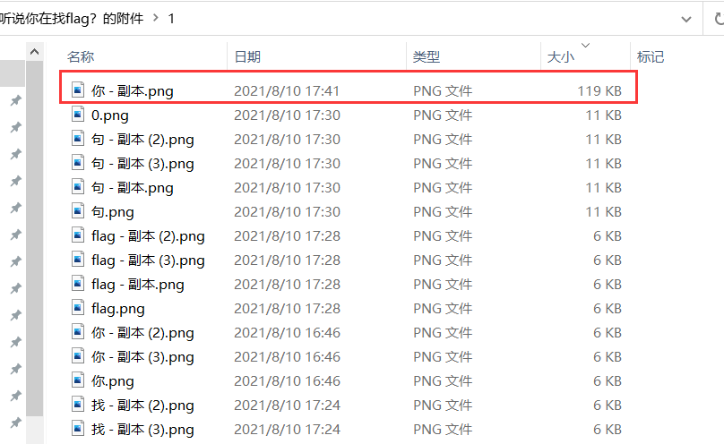 有密码后直接解压,发现有张图片特别大(没发现特别大,题目其实也给了hint,后面再说)。