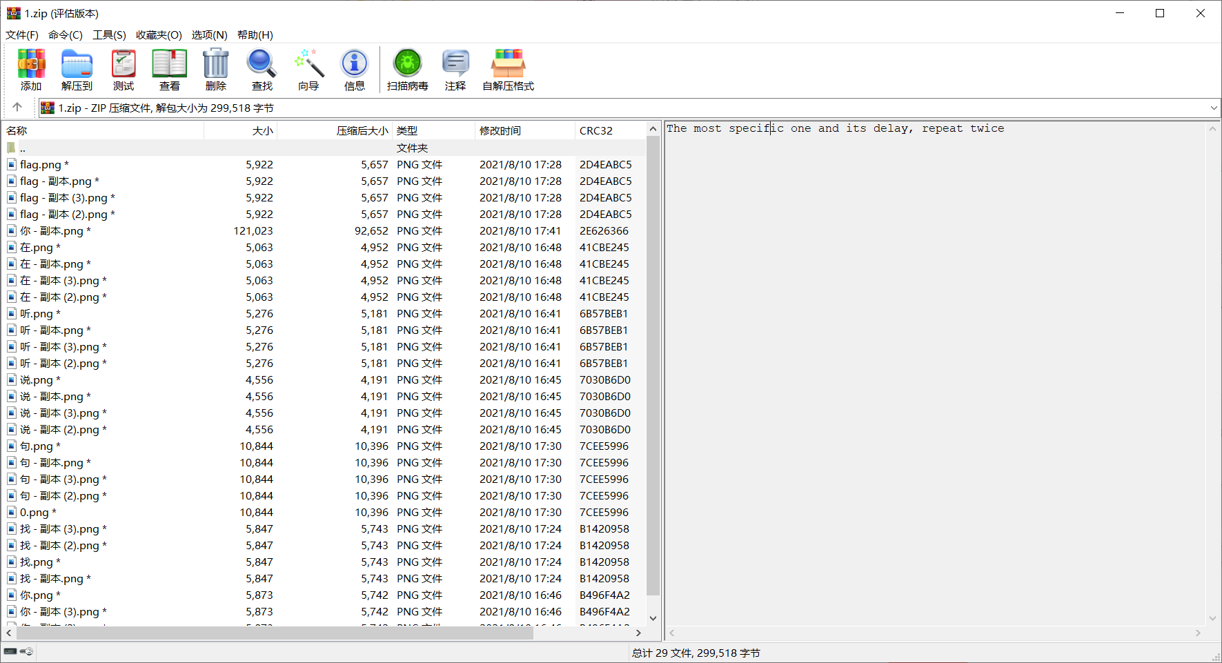 得到一个加密压缩包,里面含有大量图片。