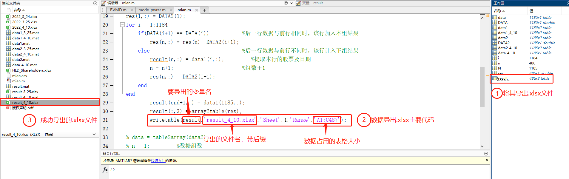 我是靠谱客的博主 糟糕小伙,这篇文章主要介绍matlab中将数据导出到Excel表格、.txt、.xml等文件中 本人应用例子matlab官网例子matlab常用的相关函数,现在分享给大家,希望可以做个参考。
