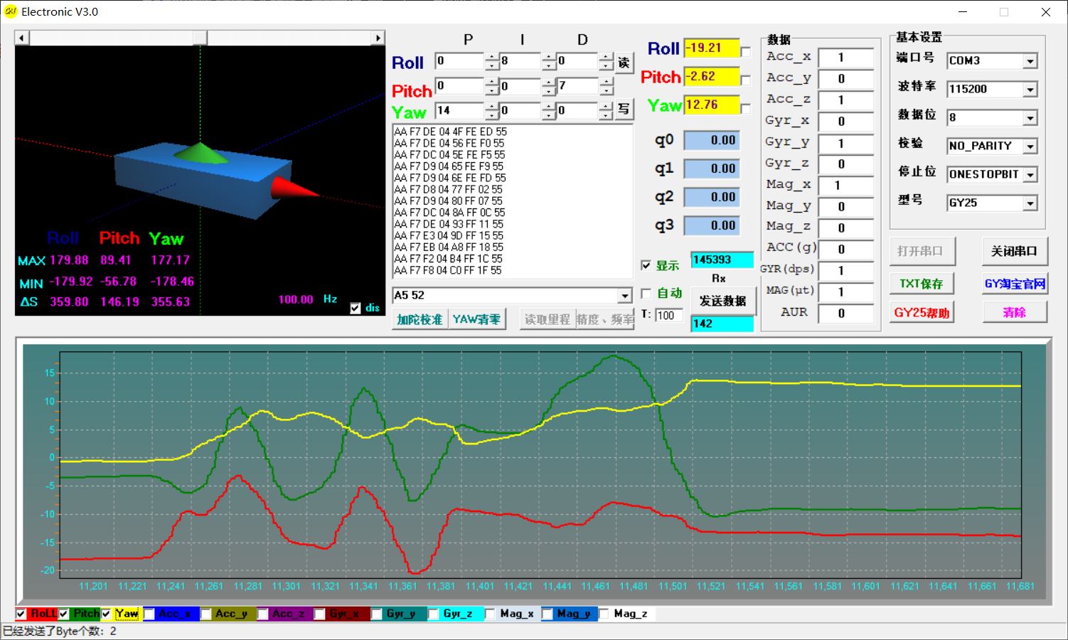 这是界面效果:(还没连接GY25倾角检测模块,目前只是按键控制)