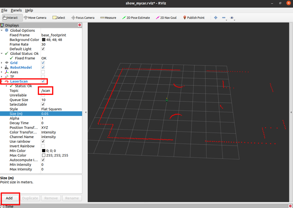先启动 rviz,添加雷达信息显示插件