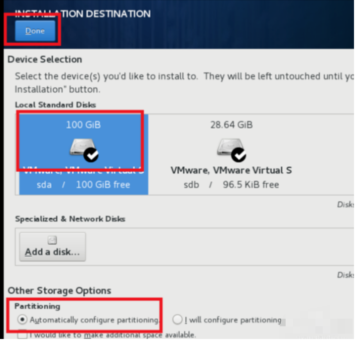 第二,我们需要把设置的虚拟磁盘进行分盘,/盘推荐越多越好,/boot盘推荐500m,swap盘为虚拟机的内存大小。