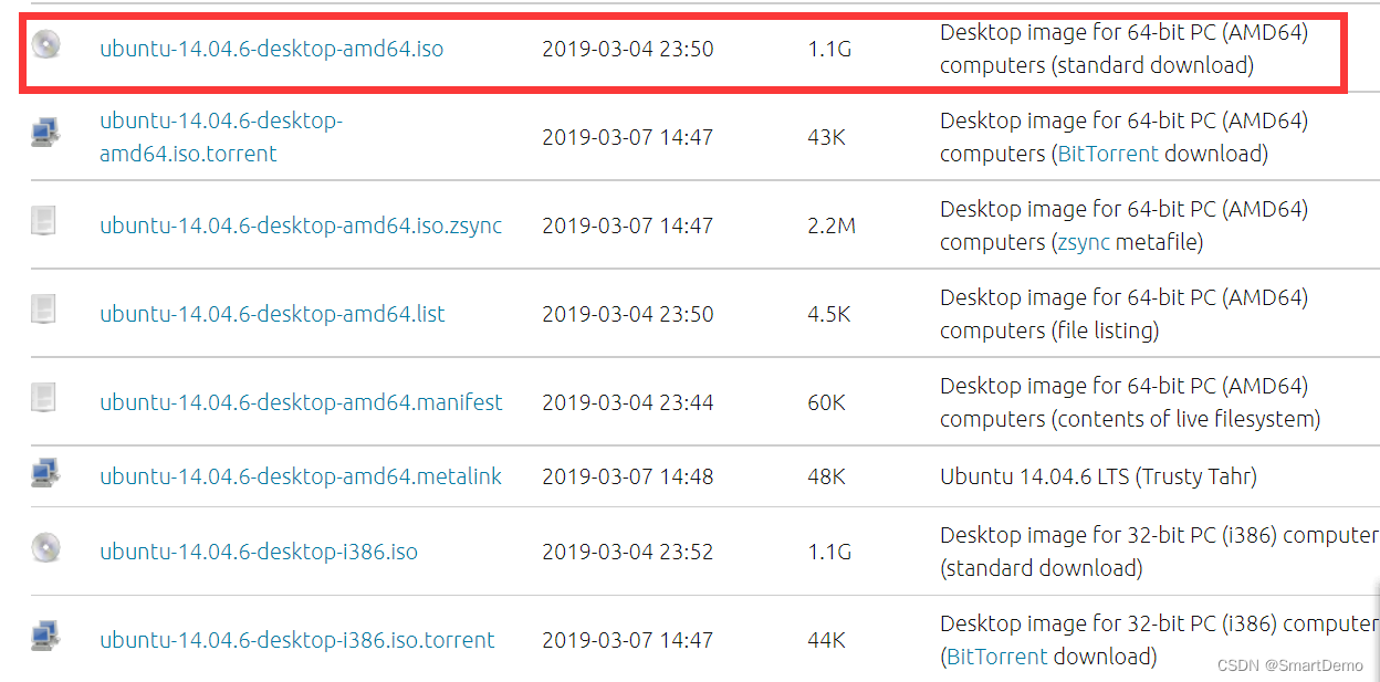 2.1选择ubuntu历史版本,例如Ubuntu 14.04.6 LTS,在众多版本中选择ubuntu-14.04.6-desktop-amd64.iso
