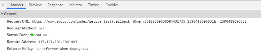 细心观察发现,getstarlist请求后面自动跟上了callback参数,参数的值与服务端返回的函数名称相同