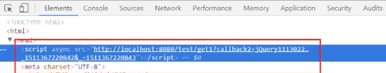 那为什么将dataType="jsonp"的形式,跨域请求就能成功呢?原因是因为当设置ajax请求的dataType="jsonp"时,实际上是在<html>的<head>中动态添加了一条<script>标签。