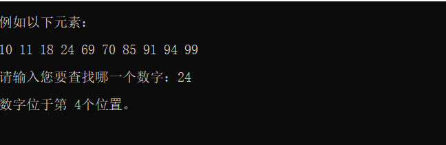 cout<<"n数字位于第 "<<i+1<<"个位置。n";