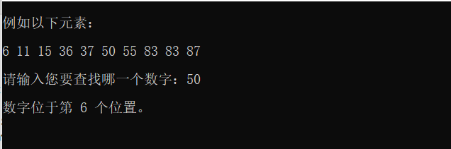 以上就是标致金毛最近收集整理的关于C/C++实现 二分法查找 (数据结构)代码实现运行结果的全部内容,更多相关C/C++实现内容请搜索靠谱客的其他文章。
