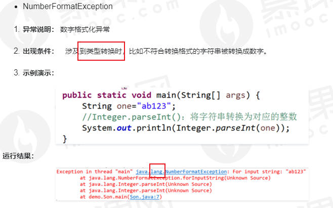 2.NumberFormatException,数字格式化异常