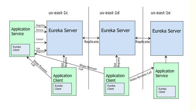 (注:Eureka Server之间通过复制的方式完成数据的同步)