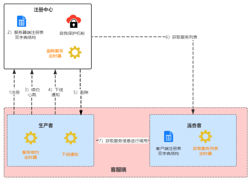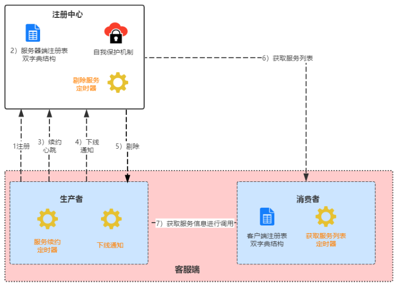 在设计中,客户端本地也有一个注册表,还有一个定时器,定时从服务端更新注册表信息,保存到客户端本地内存