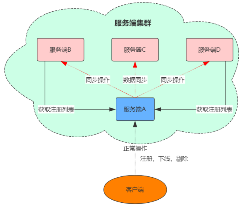 Eureka支持集群部署,不同区域、机房部署多个服务端实例,这样可以横向扩展服务发现的规模,当有一个服务端挂掉,其他服务端仍然可以正常运行,保证系统的高可用性,但是集群多个节点部署,必须要考虑的一个问题,就是数据一致性。