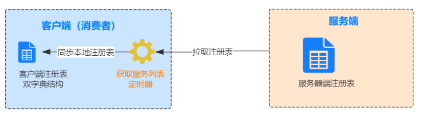客户端定时向服务端发送请求,获取注册表信息,保存到本地内存。