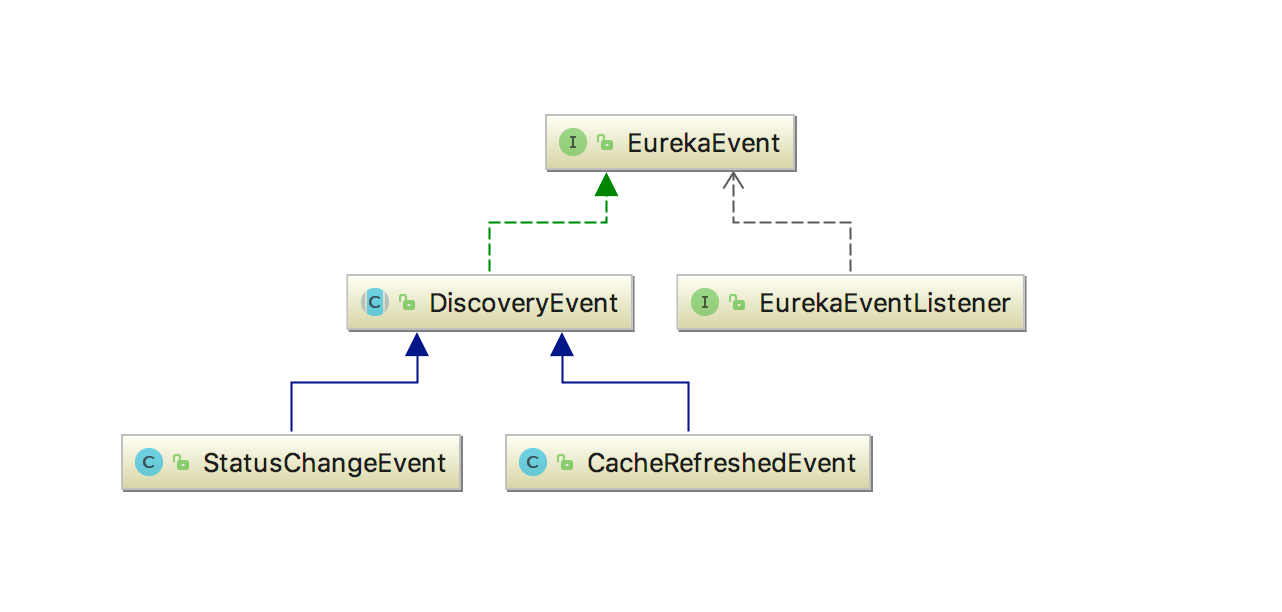 Eureka中的事件模式,这是一个很明显的观察者模式,以下为它的类图类图: