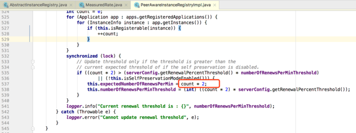 核心原因就是在Eureka Server计算期望心跳数的时候写死了每分钟的心跳间隔,即30秒,所以他永远会是*2(感觉像是新手写的代码啊啊啊 -_-)