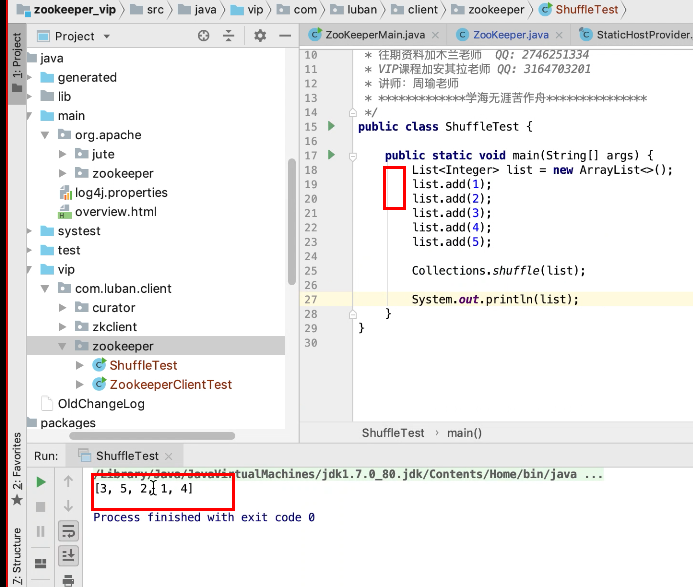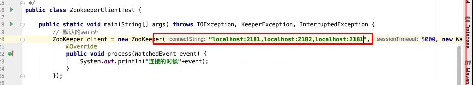 图5 如果 写多个地址的话zookeeper回随机选择一个地址连接,如果这个地址挂了,他会从其他的地址再从新选一个连接。