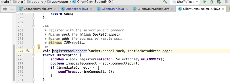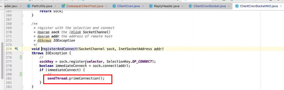 图26 276行注册一个连接事件,277行 判断是不是立即连接成功,如果是调用primeConnection()方法。
