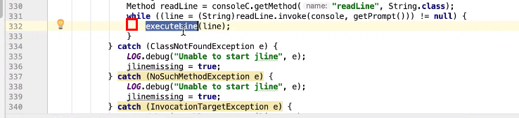 图28 314行,316行为java 的命令行实现类。332行为核心的实现类方法 图31。执行命令 图30命令行前缀对应的代码 图29;
