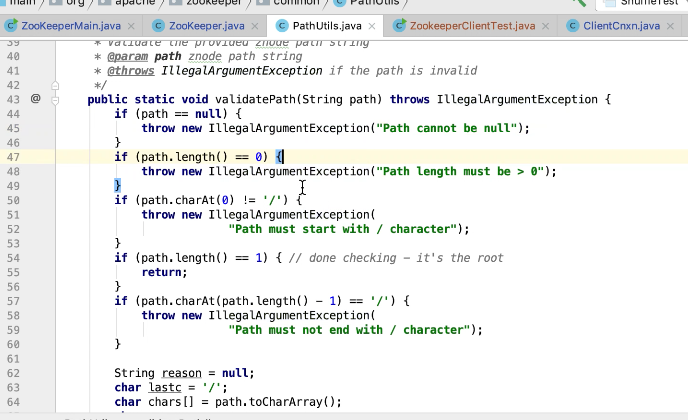 图39验证path , 如果path的首字符不是/抛出异常,如果最后一位是/ 抛出异常,如果 -s 最后一位是/不会抛出异常,为什么吗,因为顺序节点默认+1了,最后一位就是1了,不会抛出异常。