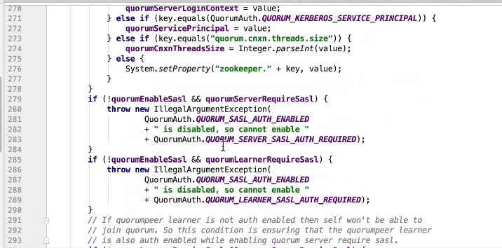 图 3 277 判断zk的状态, 281行设置只读, 282行 new Zookeeper()