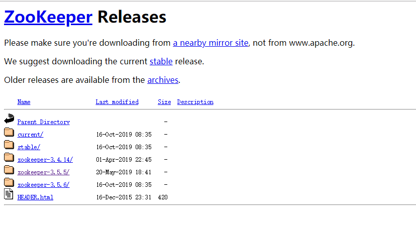 官网下载地址:http://mirror.bit.edu.cn/apache/zookeeper/
