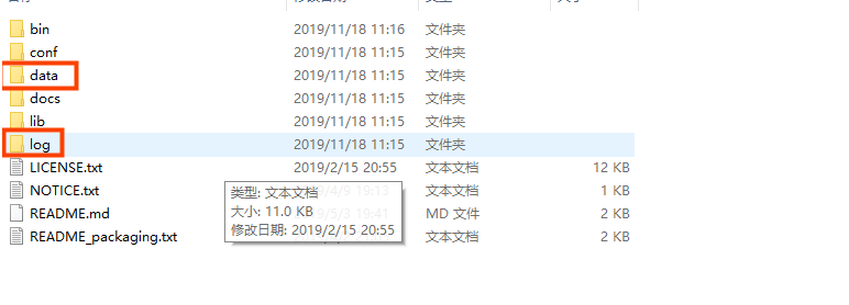 1:将下载的下来的包解压,并手动创建“data”和“log”两个文件夹