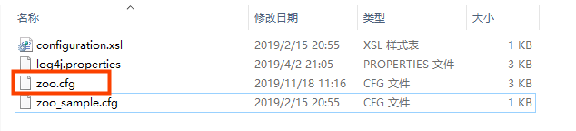 2:进入conf文件夹下,选择“zoo_sample.cfg”文件,复制一份更名“zoo.cfg”