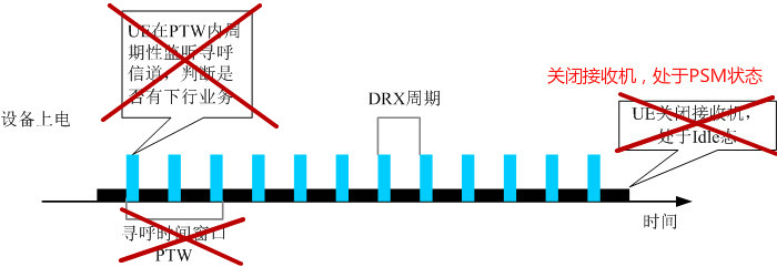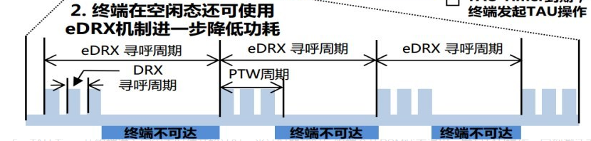 6.eDRX主要目的是支持更长周期的寻呼监听,从而达到省电的目的,在下行数据发送频率小时,通过核心网和NB协商配合,NB跳过大部分的寻呼监听,从而达到省电的模式。eDRX:Extended idle mode DRX,扩展不连续接收模式。对下行业务时延有较高要求,可根据设备是否处于休眠状态缓存消息或者立即下发消息,如智能穿戴设备。在这里的寻呼时间窗口PTW不太明白?在eDRX的处于不监听的状态的时间,是空闲状态,还是PSM状态,功耗多少?