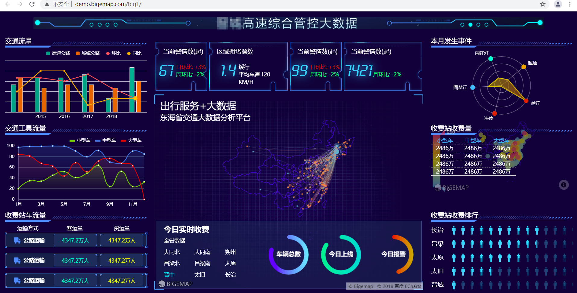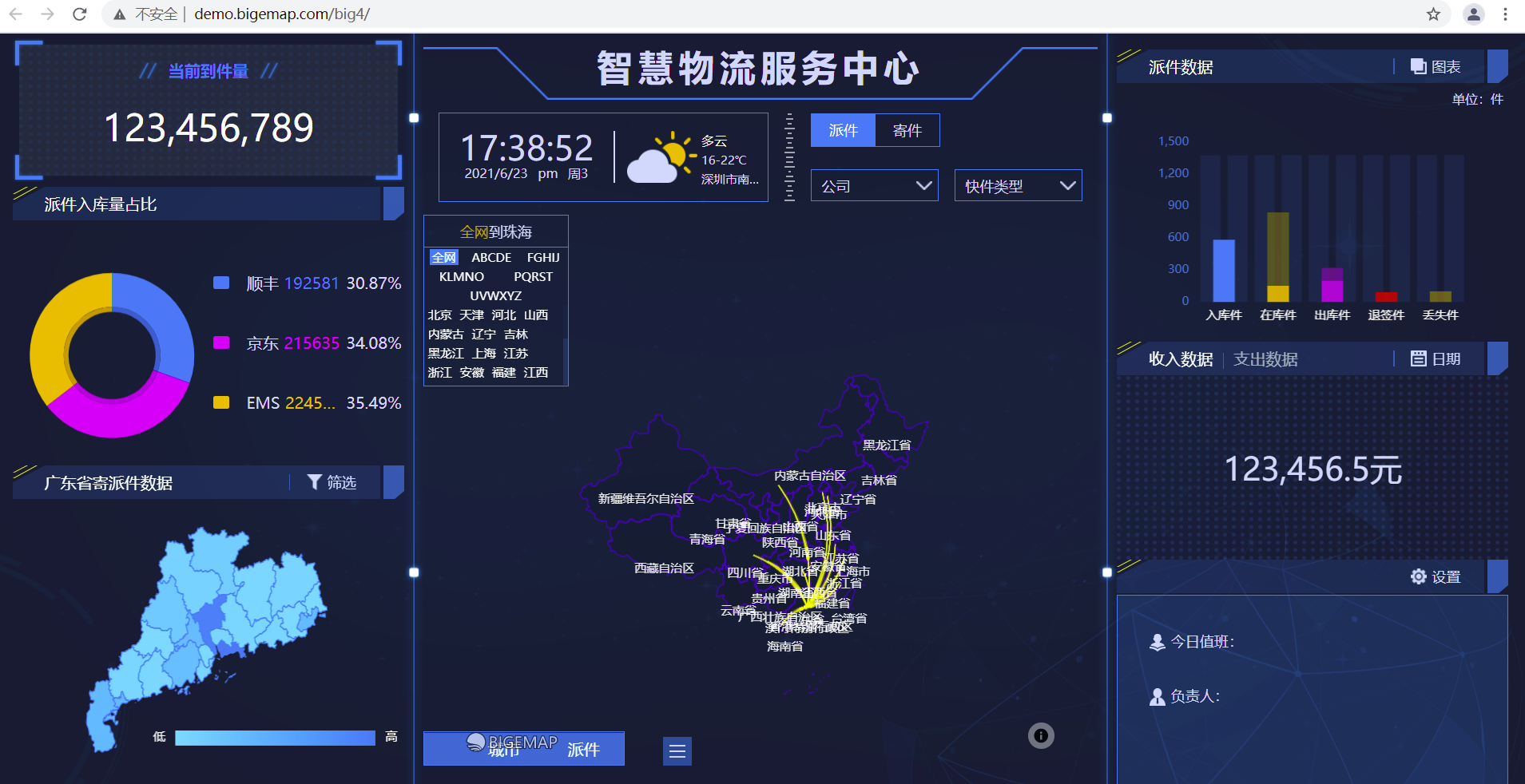 上图的系统就是一个GIS系统+可视化前端插件,在接入用户数据就展现出来了