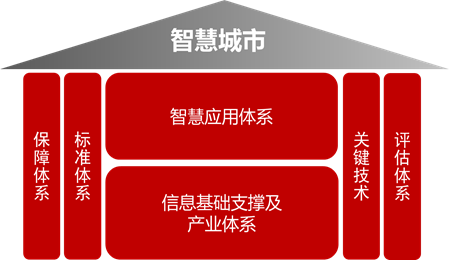 “智慧城市”这个复杂长远的工程,由保障体系、标准体系、关键技术、信息基础支撑、产业体系、智慧应用体系、评估体系组成。保障体系、标准体系、关键技术是建设的保障,信息基础、产业体系是建设的支撑,应用体系是建设的功能,评估体系是建设的衡量标准。