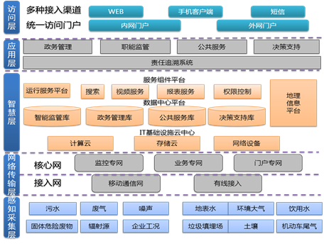 应用访问层建立面向对象的业务应用系统和信息服务门户,为环境质量、污染防治、生态保护、辐射管理等业务提供“更智慧的决策”。
