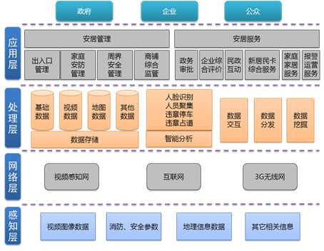 应用层提供基于任务协同的应用,实现以安居管理、安居服务为主体的智能应用,优化以企业、政府、公众为服务对象的社会服务,提供即插即用式的应用接口,大幅提高系统的效率。
