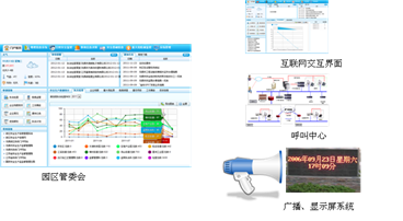 园区的日常管理与服务是衡量园区质量的重要指标, 建立一套管理系统和运维体系尤为重要。通过管理系统可以加强管委会与企业、公众的互动,优化管委会的服务,增强企业安全生产、环境保护的自主性。园区智能管理系统包括园区管委会管理界面、互联网交互界面、呼叫中心、广播、显示等。