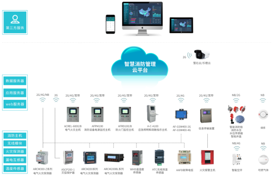智慧消防综合管理云平台基于物联网、大数据、云计算等现代信息技术,将分散的火灾自动报警设备、电气火灾监控设备、智慧烟感探测器、智慧消防用水等设备连接形成网络,并对这些设备的状态进行智能化感知、识别、定位,实时动态采集消防信息,通过云平台进行数据分析、挖掘和趋势分析,帮助实现科学预警火灾、网格化管理、落实多元责任监管等目标。填补了原先针对“九小场所”和危化品生产企业无法有效监控的空白,适应于所有公建和民建,实现了无人化值守智慧消防,实现智慧消防“自动化”、“智能化”、“系统化”、用电管理“精细化”的实际需求。