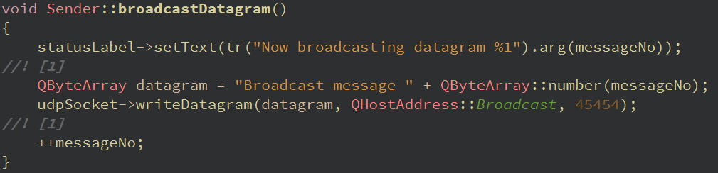 QByteArray datagram = "Broadcast message " + QByteArray::number(messageNo);