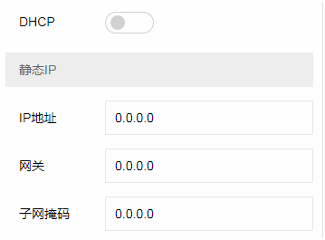 DHCP开关,关闭dhcp功能后,手动设置模块IP地址,网关,子网掩码。