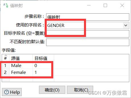 把字段GENDER中数据Male替换为数字0,Female替换为数字1。