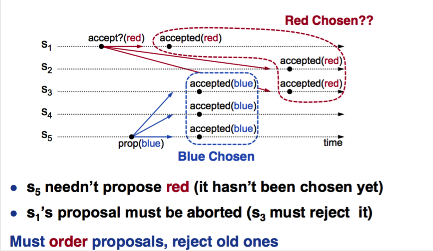 2.随后S5发起accept(5,blue),对于S3而言,由于接收到更新的提议,会将acceptedValue值改为blue