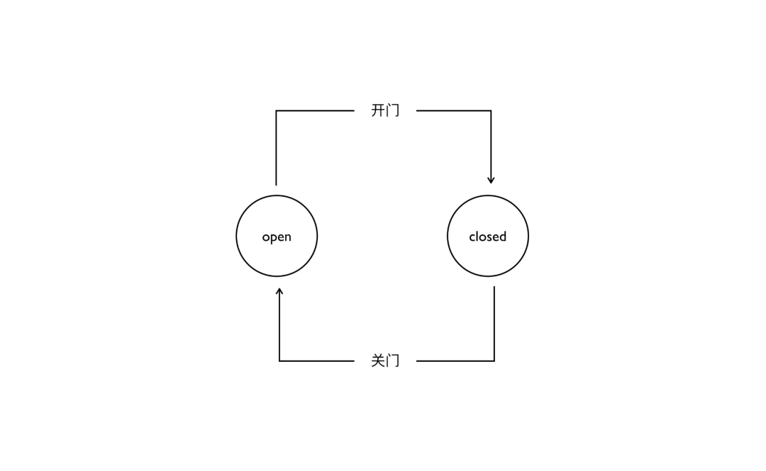 看下图,门,有两种状态,开着的和关着的。因此,在我看来状态是一种静态的场景,而转换赋予了其动态的变化。
