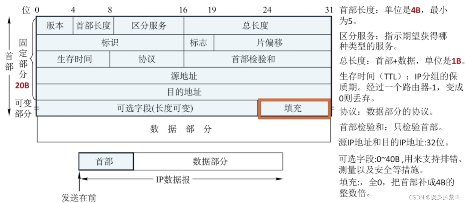 注:总长度单位是1B;片偏移单位是8B;首部长度单位是4B。