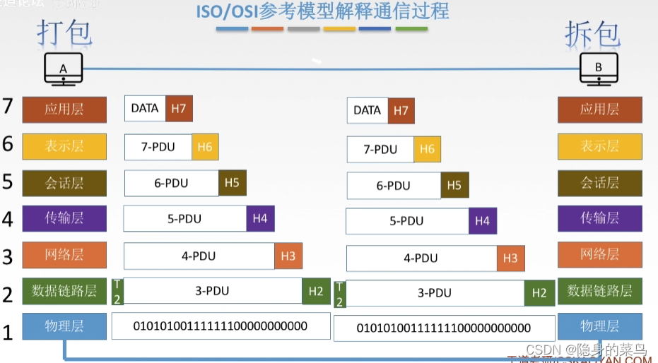目的:支持异构网络系统的互联互通。(每层完成特定的功能)