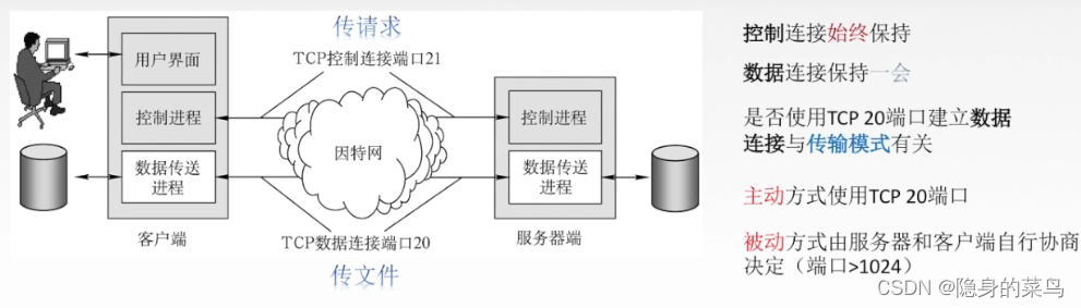 1.FTP是一种文件传输协议,负责将我们电脑上的数据与服务器数据进行交换