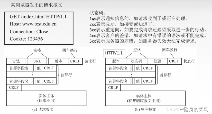 HTTP协议定义了浏览器(万维网客户进程) 怎样向万维网服务器请求万维网服务器请求万维网文档,以及服务器怎样把文档传送给浏览器。