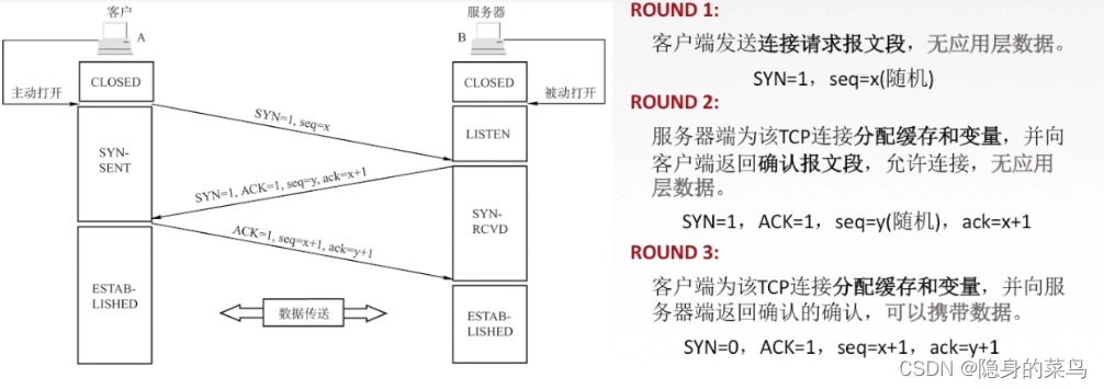会话层:向表示层实体/用户进程提供建立连接并在连接上有序地传输数据。这是会话,也是建立同步(SYN)。