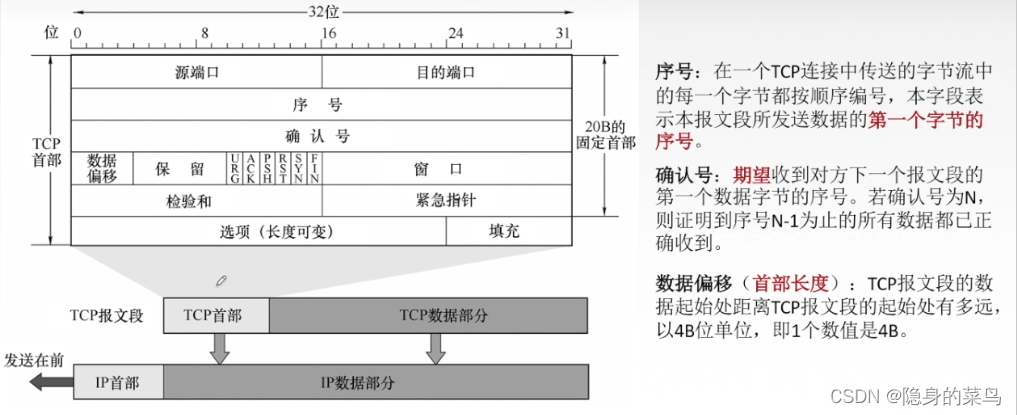 序号:一个字节占一个序号,序号字段指的是一个报文段第一个字节的符号。