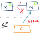 如下图所示,为了保证一致性,当发生分区现象后,N1节点上的数据已经更新到y,但由于N1和N2之间的复制通道中断,数据y无法同步到N2,N2节点上的数据还是x。这时客户端C访问N2时,N2需要返回Error,提示客户端C“系统现在发生了错误”,这种处理方式违背了可用性(Availability)的要求,因此CAP三者只能满足CP。