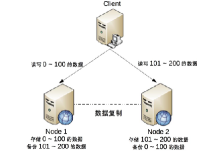 我们可以将用户id为0 ~ 100的数据存储在Node 1,将用户id为101 ~ 200的数据存储在Node 2,Client根据用户id来决定访问哪个Node。对于单个用户来说,读写操作都只能在某个节点上进行;对所有用户来说,有一部分用户的读写操作在Node 1上,有一部分用户的读写操作在Node 2上。